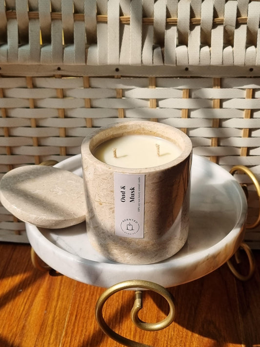 Elevate your space with our marble jar candle collection, meticulously handcrafted from locally-sourced marble and onyx. These timeless jars are not only the perfect addition to your home decor, they also come with thoughtfully designed lids to ensure the candle's safety from dust.